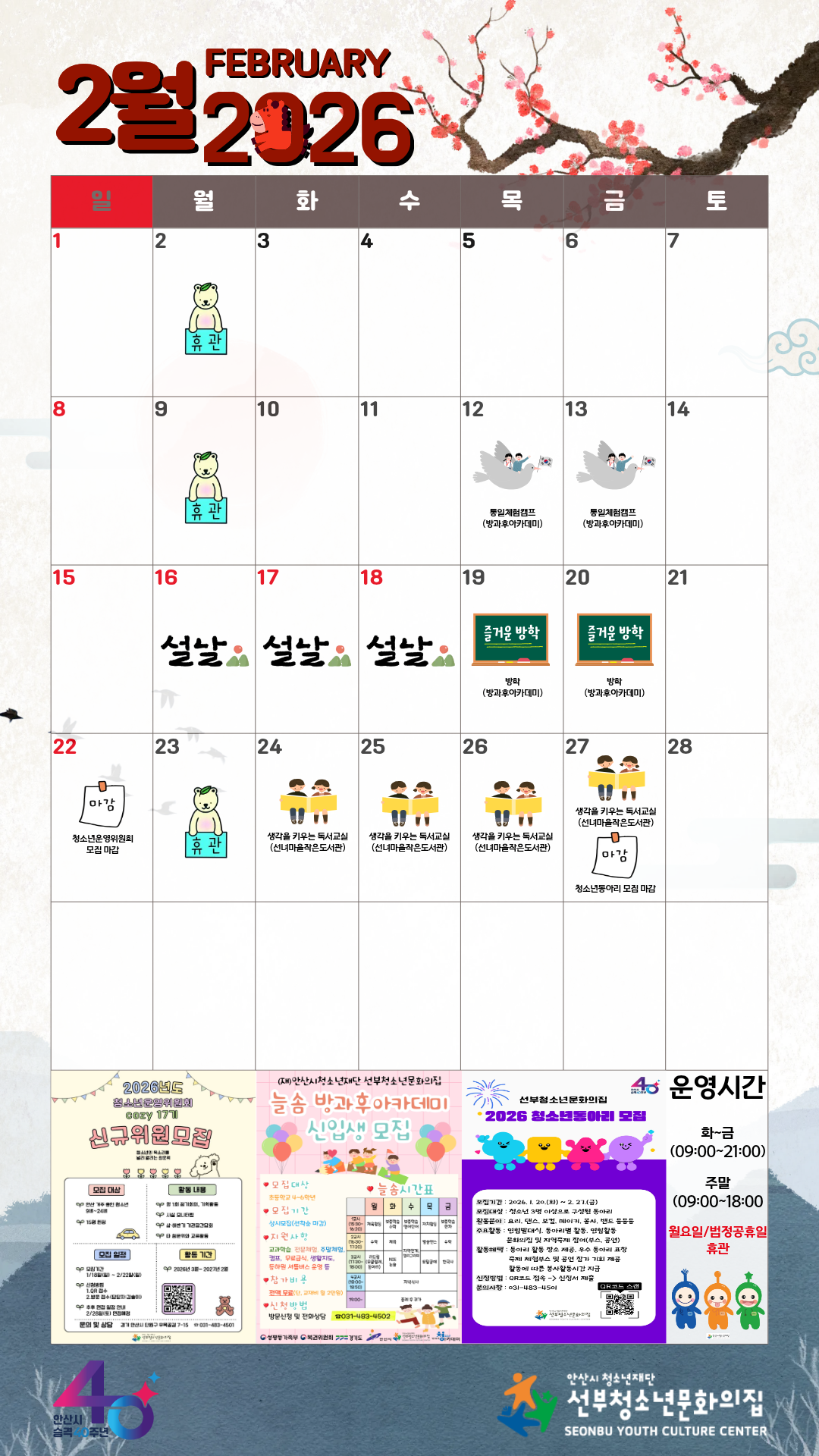 [선부] 선부청소년문화의집 2월 시설운영안내