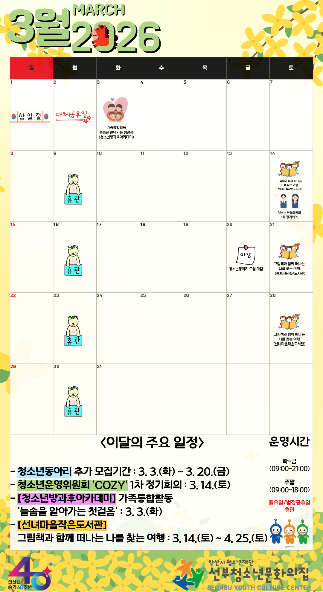 [선부] 선부청소년문화의집 3월 시설운영안내